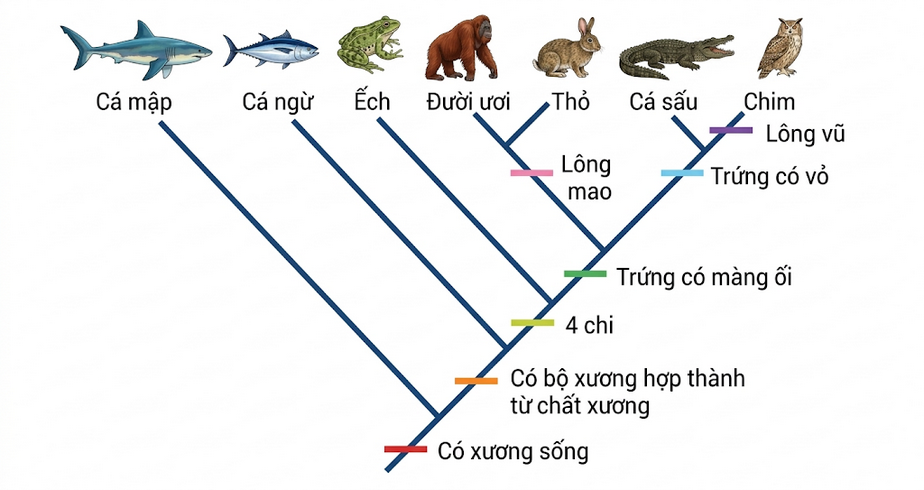 Quan sát cây phát sinh chủng loại ở hình sau và cho biết phát biểu nào sau đây