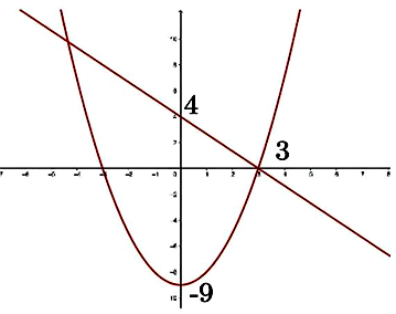 Đồ thị dưới đây biểu diễn hai hàm $f(x)$ bậc hai và $g(x)$ bậc một. Giá trị của