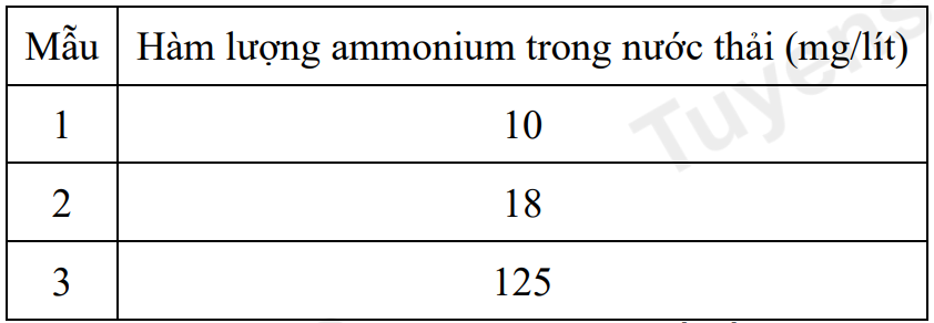 Giả sử tiến hành xử lí ba mẫu nước thải theo phương pháp trên, biết rằng tiêu chuẩn hàm lượng ammonium cho phép là 1,0 mg/lít. Cho các nhận định sau: