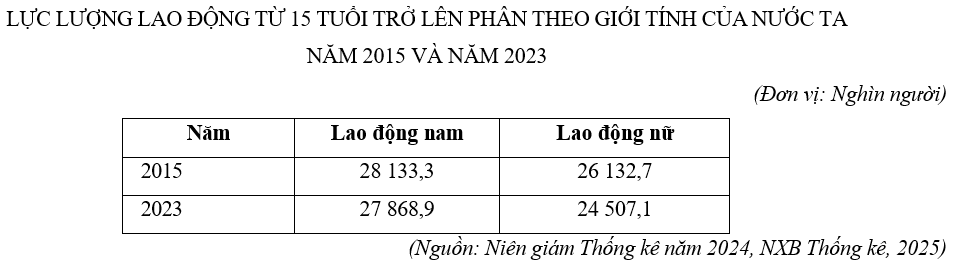Cho bảng số liệu:Căn cứ vào bảng số liệu trên, hãy cho biết từ năm 2015 đến năm 2023, tỉ