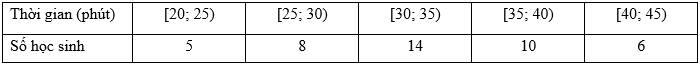 Khảo sát thời gian ứng dụng AI vào học tập trong một ngày của học sinh lớp 12A, thu được mẫu số liệu như sau: