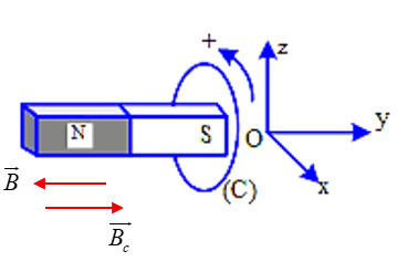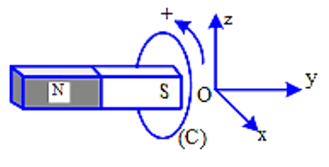 Một vòng dây dẫn kín, tròn, phẳng không biến dạng (C) có diện tích $100cm^{2}$ đặt trong mặt phẳng song song với mặt phẳng Oxz, một nam châm thẳng đặt song song với trục Oy và chọn chiều dương trên (C) như hình vẽ.