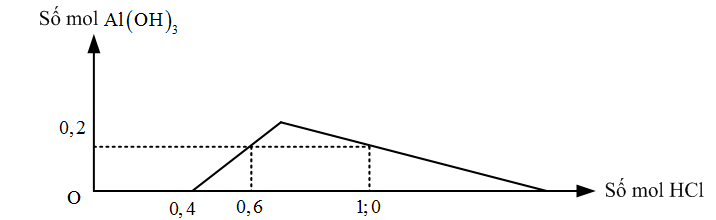 Khi nhỏ từ từ đến dư dung dịch HCl vào dung dịch chứa x mol NaOH và y mol NaAlO2 kết quả thí nghiệm được biểu diễn bằng đồ thị bên. Xác định tỉ lệ x: y?
