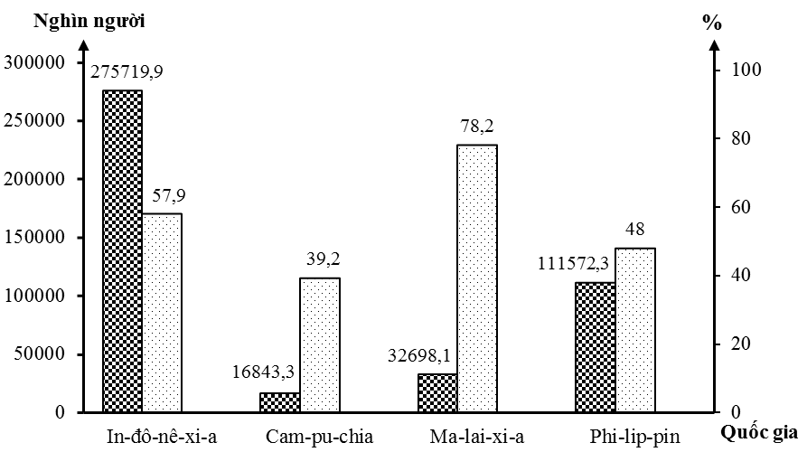 Tổng số dân và tỉ lệ dân thành thị của một số quốc gia Đông Nam Á năm 2023