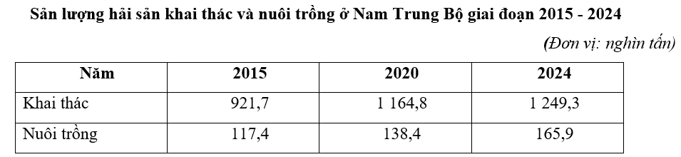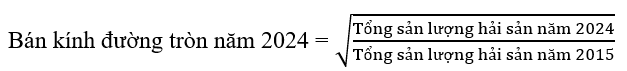 Dựa vào bảng số liệu, hãy cho biết, để vẽ biểu đồ tròn thể hiện quy mô và cơ cấu sản lượng hải sản của vùng Nam Trung Bộ, nếu quy ước bán kính đường tròn năm 2015 là 1,0 (đơn vị bán kính) thì bán kính đường tròn năm 2024 là bao nhiêu? (Làm tròn kết quả đến một chữ số thập phân).