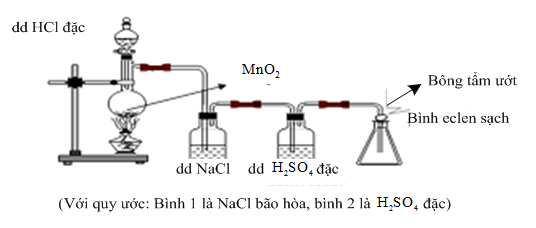 Hình vẽ bên mô tả thí nghiệm điều chế khí clo trong phòng thí nghiệm. Phát biểu đúng về thí nghiệm trên là:
