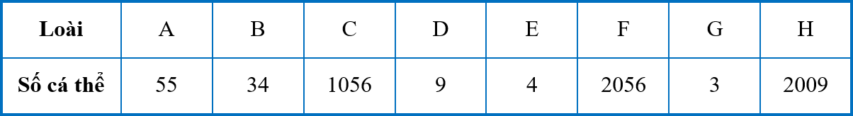 Bảng dưới đây cho thấy số lượng cá thể của các loài trong một quần xã thực vật ở