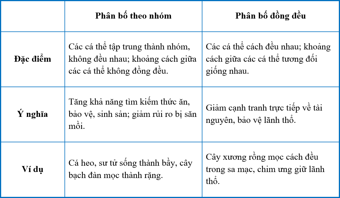 Phân biệt các kiểu phân bố của cá thể trong quần thể?