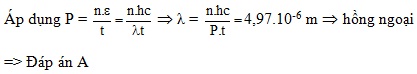 Một bóng đèn có công suất phát xạ là 1W, phát ra bức xạ đơn sắc có bước sóng λ. Biết rằng trong mỗi giây bóng đèn đó phát ra 25.1018 phôtôn, ánh sáng do đèn phát ra là