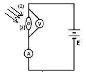 Trong sơ đồ hình vẽ bên thì: (1) là chùm sáng trắng, (2) là quang điện trở, A là ampe kế, V là