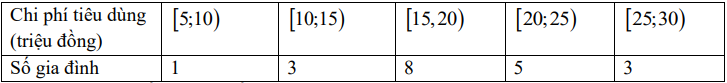 Thống kê mức tiêu dùng của 20 hộ gia đình hàng tháng có bảng số liệu sau