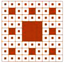 Một hình vuông có cạnh bằng 3. Chia hình vuông đó thành 9 hình vuông bằng nhau và tô màu hình vuông ở chính giữa. Với mỗi hình vuông nhỏ chưa được tô màu, lại chia thành 9 hình vuông bằng nhau và tô màu hình vuông ở chính giữa. Cứ như thế, quá trình trên được lặp lại. Tính diện tích phần được tô màu sau 3 lần chia.