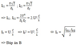 Lần lượt mắc điện áp xoay chiều u = U√2cosωt vào hai đầu cuộn cảm thuần L và tụ điện C thì cường độ dòng điện cực đại qua các phần tử tương ứng là I01 và I02. Dùng cuộn cảm L và tụ điện C nối trên mắc thành mạch dao động LC mạch thực hiện dao động điện từ với hiệu điện thế cực đại là U. Khi đó cường độ dòng điện cực đại qua cuộn dây là: