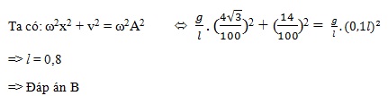 Một con lắc đơn dao động điều hòa với biên độ góc 0,1 rad ở một nơi có gia tốc trọng trường. Khi vật đi qua vị trí li độ dài 4√3 cm nó có tốc độ 14 cm/s. Chiều dài của con lắc đơn là :