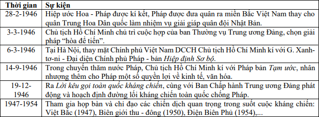 Cho bảng niên biểu một số sự kiện tiêu biểu về Chủ tịch Hồ Chí Minh với cuộc kháng chiến chống thực dân Pháp (1945 - 1954):