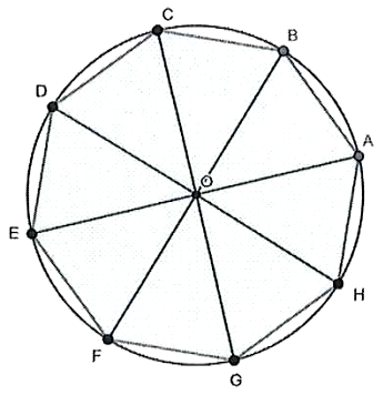 Cho một hình bát giác đều ABCDEFGH nội tiếp trong một đường tròn tâm O như hình bên. Gắn