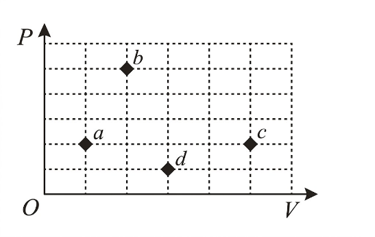 Một khối khí xác định có thể biến đổi trạng thái để có thể tích và áp suất ứng với các điểm a, b, c, d trong đồ thị pOV như hình bên. Khối khí có nhiệt độ bằng nhau ứng với trạng thái của các điểm