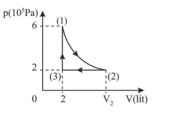 Một khối khí lí tưởng đang ở trạng thái (1) có nhiệt độ 780 K biến đổi trạng thái được