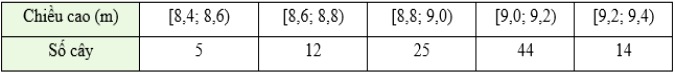 Kết quả đo chiều cao của 100 cây keo ba năm tuổi tại một nông trường được cho ở bảng