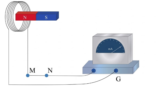 | b) Khi cuộn dây và nam châm dịch chuyển lại gần nhau thì dòng điện cảm ứng trong mạch có chiều từ M đến N. | ||