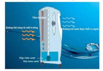 Quạt điều hòa là thiết bị làm mát hoạt động dựa trên nguyên lý bay hơi nước, kết hợp