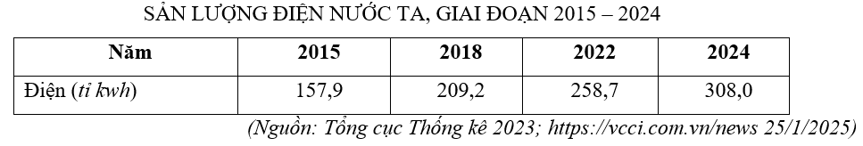 Cho biết, giai đoạn từ năm 2015 đến 2024, bình quân mỗi năm sản lượng điện nước ta tăng bao nhiêu