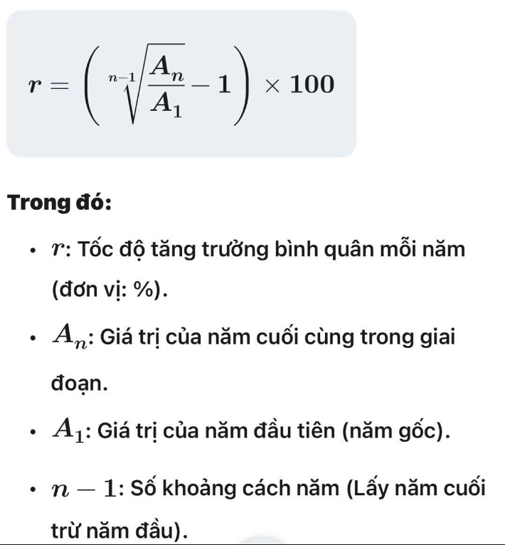 Dựa vào công thức tính: