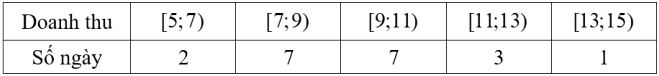 Doanh thu bán hàng trong 20 ngày của một cửa hàng được ghi lại ở bảng sau (đơn vị: triệu