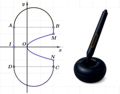 Bút viết của một bảng vẽ điện tử được để trong một chiếc giá là một khối tròn xoay có mặt cắt qua trục là một hình phẳng có hình dạng và các kích thước gắn với hệ trục tọa độ Oxy như hình vẽ dưới đây: