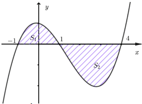 Diện tích phần phía dưới trục hoành là $S_{2} = {\int_{1}^{4} -}f(x)dx$.