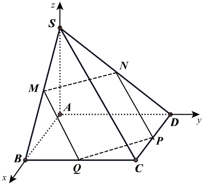 Cho hình chóp S.ABCD có đáy là hình vuông cạnh a, $SA\bot(ABCD)$, biết $SC = a\sqrt{3}$. Gọi M, N, P, Q