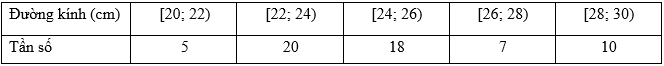 Lâm trường Tam Đảo thống kê đường kính thân gỗ của 60 cây xoan đào được cho ở bảng sau: