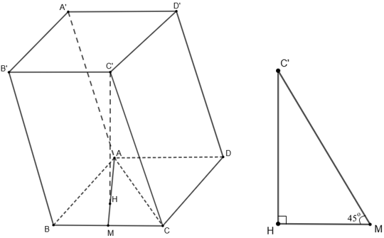 Từ giả thiết $C'A = C'B = C'C$, suy ra hình chiếu của C' lên đáy $(ABC)$ là tâm H của tam giác đều ABC.