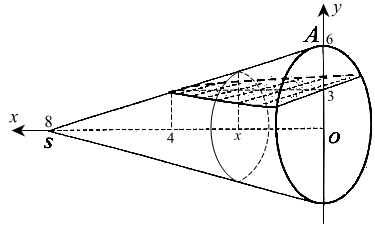 Cho hình nón có bán kính đáy $OA = 6cm$ và chiều cao $SO = 8cm$. Cắt hình nón đã cho bởi một mặt