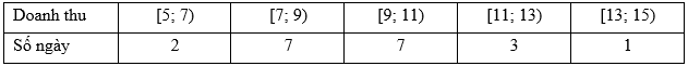 Doanh thu bán hàng trong 20 ngày được lựa chọn ngẫu nhiên của một cửa hàng được ghi lại ở bảng sau (đơn vị: triệu đồng):