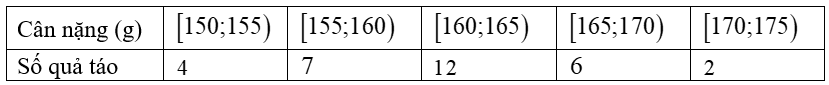 Kết quả khảo sát cân nặng của 1 thùng táo ở một lô hàng cho trong bảng sau: