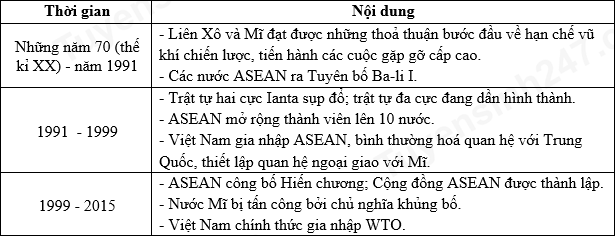 | c) Cộng đồng ASEAN ra đời phản ánh hợp tác nội khối trong khu vực đang được đẩy mạnh theo chiều sâu và căng thẳng Đông - Tây đã hoàn toàn chấm dứt. | ||