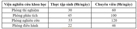 Một nhóm nghiên cứu gồm 1 chuyên viên tại Phòng nghiên cứu và 2 thực tập sinh tại Phòng phân tích. Trong một ngày, để đẩy nhanh tiến độ dự án, mỗi người đều làm việc 8 giờ tiêu chuẩn và tăng ca đến mức tối đa số giờ cho phép. Tổng chi phí tiền lương nhà trường phải trả cho cả nhóm trong ngày hôm đó là bao nhiêu?