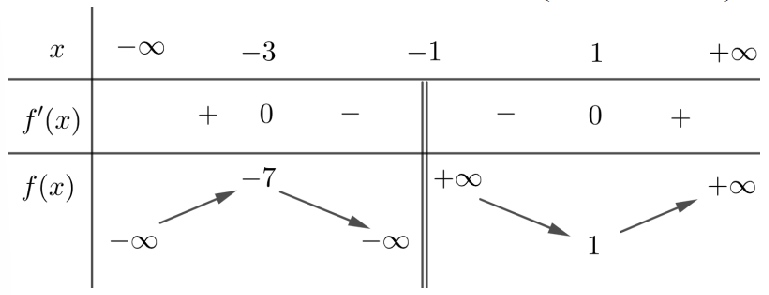 Cho hàm số $y = f(x) = \dfrac{ax^{2} + bx + c}{dx + e}$ $\left( {a \neq 0,x \neq - \dfrac{d}{e}} \right)$ có bảng biến thiên như sau: