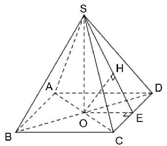 Cho hình chóp đều S.ABCD có chiều cao là 1 và $AC = 2$ (tham khảo hình
