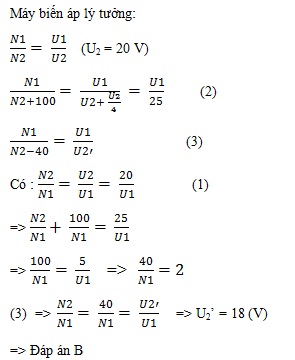 Khi đặt một điện áp xoay chiều có giá trị hiệu dụng không đổi vào cuộn sơ cấp của một máy biến áp lí tưởng thì điện áp cuộn thứ cấp là 20V. Khi tăng số vòng dây cuộn thứ cấp thêm 100 vòng thì điện áp thứ cấp tăng thêm 25%. Khi giảm số vòng dây cuộn thứ cấp 40 vòng thì điện áp trên hai đầu dây cuộn thứ cấp là: