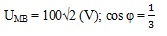 Đặt điện áp xoay chiều có giá trị hiệu dung không đổi 150 V vào đoạn mạch AMB gồm đoạn