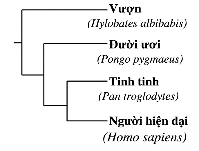 Hình bên thể hiện sự phát sinh của bốn loài thuộc bộ linh trưởng.
