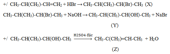 Y, Z lần lượt là:( Biết X, Z là sản phẩm chính):