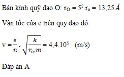 Trong nguyên tử Hidro bán kính của quỹ đạo K là r0 = 0,53.10-10 m. Hãy tính bán kính quỹ đạo O, vận tốc của electron trên quỹ đạo đó. Cho k = 9.109 (Nm2/C2)