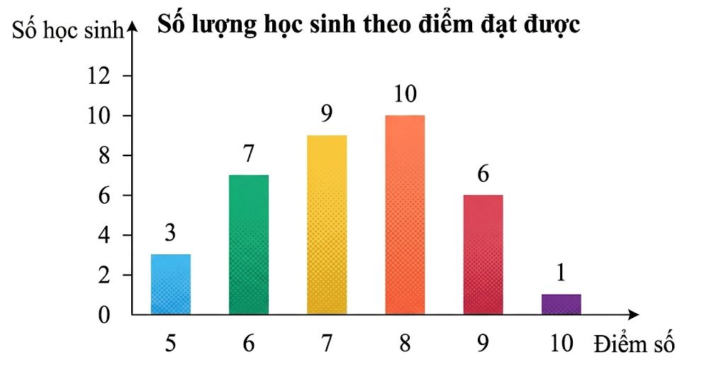 1) Đọc dữ liệu từ biểu đồ cột để xác định số lượng học sinh (tần số) đạt được ở mỗi mức điểm số.