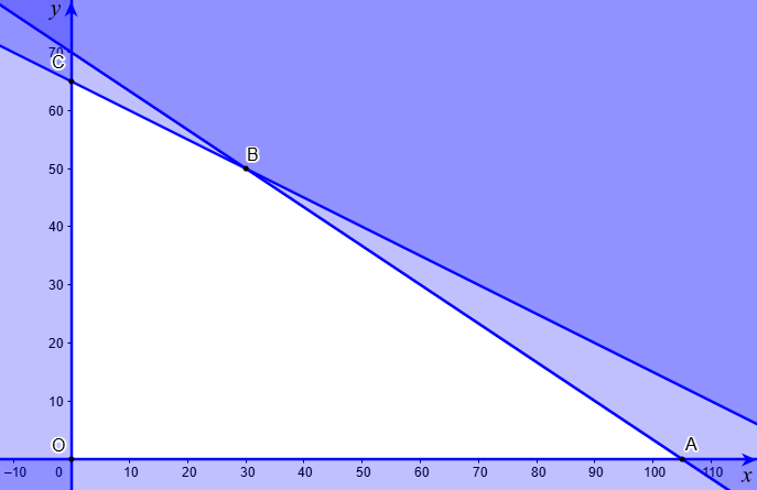 Trong một xưởng in, người ta sản xuất hai loại poster quảng bá sự kiện. Loại I sử dụng 2 tờ giấy khổ lớn và 1 đơn vị mực màu, thu được 35 nghìn đồng. Loại II sử dụng 3 tờ giấy khổ lớn và 2 đơn vị mực màu, thu được 60 nghìn đồng. Biết rằng xưởng chỉ có tối đa 210 tờ giấy khổ lớn và 130 đơn vị mực màu và mỗi poster phải được in trọn vẹn. Hỏi số tiền lớn nhất mà xưởng có thể thu được là bao nhiêu (nghìn đồng)?