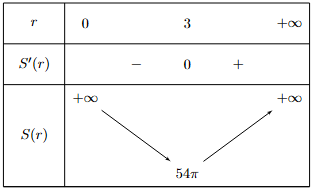 | b) Để diện tích toàn phần nhỏ nhất thì bán kính $r = 3$ (m). | ||