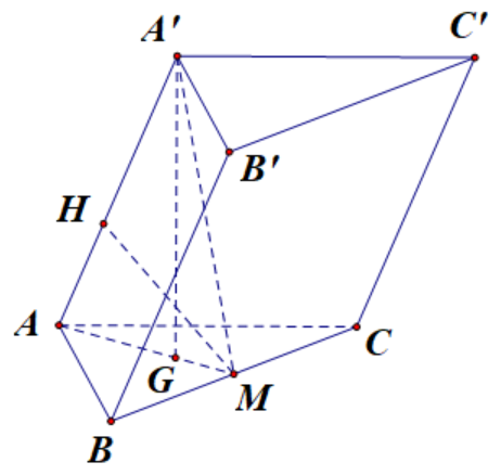 - Cột trụ chính AA' được đặt nghiêng sao cho hình chiếu vuông góc của đỉnh mái A' lên mặt sàn (ABC) trùng khớp với trọng tâm G của tam giác ABC.