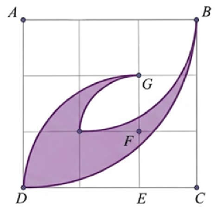 Từ bảng gỗ hình vuông ABCD có độ dài cạnh 12 cm, bạn Anh chia hình vuông này thành 9 hình vuông nhỏ bằng nhau rồi vẽ một hình càng cua được giới hạn bởi các cung phần tư của các đường tròn tâm A, E, F, G (xem hình vẽ). Tính diện tích hình càng cua (phần tô đậm trong hình vẽ) theo đơn vị $cm^{2}$. (Kết quả làm tròn đến hàng đơn vị).